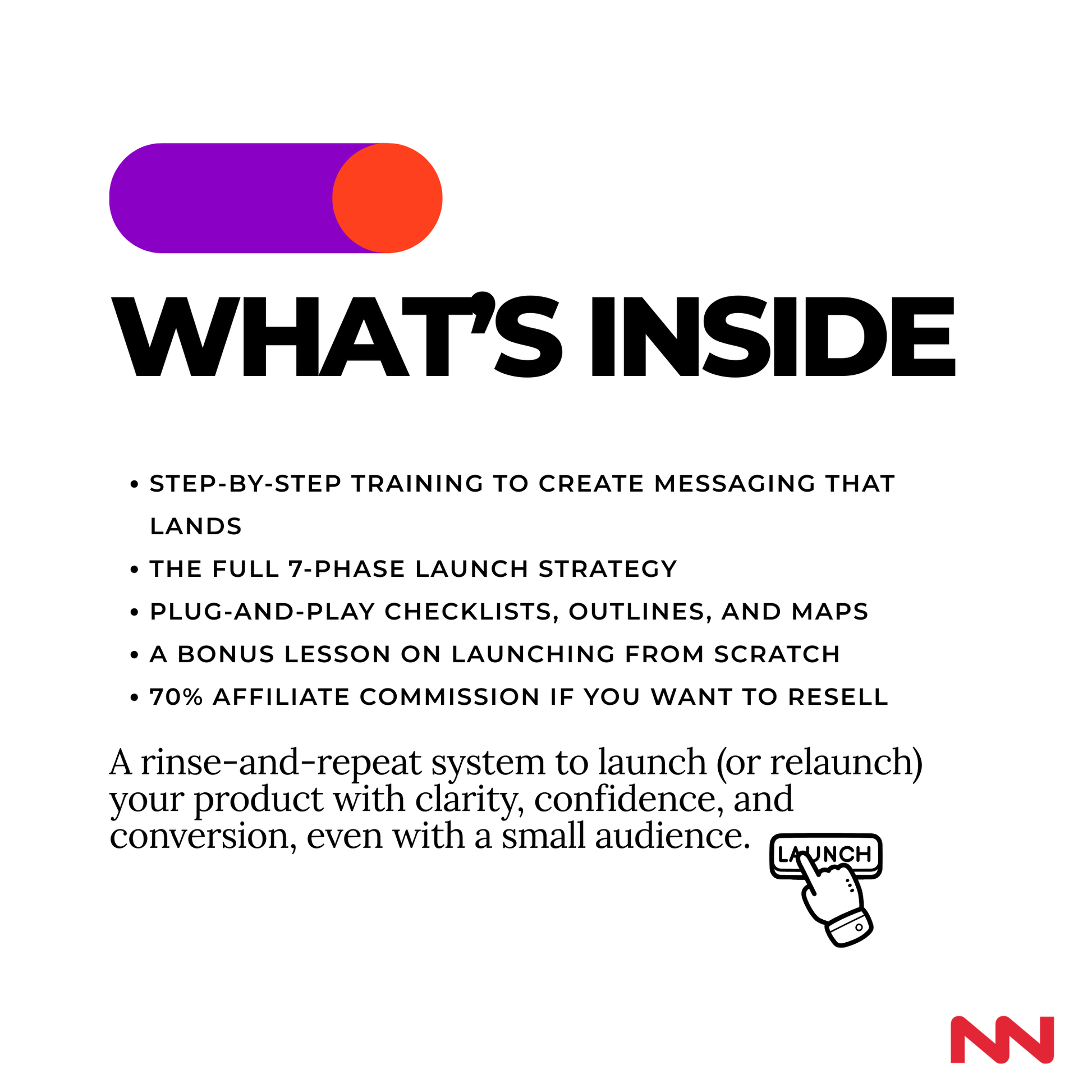 In just 30 days, you’ll follow a proven 7-phase launch strategy that shows you how to position your offer, craft messaging that clicks with your audience, and execute a launch that feels simple yet powerful. Whether you’re bringing a new product to market or relaunching something that hasn’t gained traction, this system makes the process easy and repeatable.